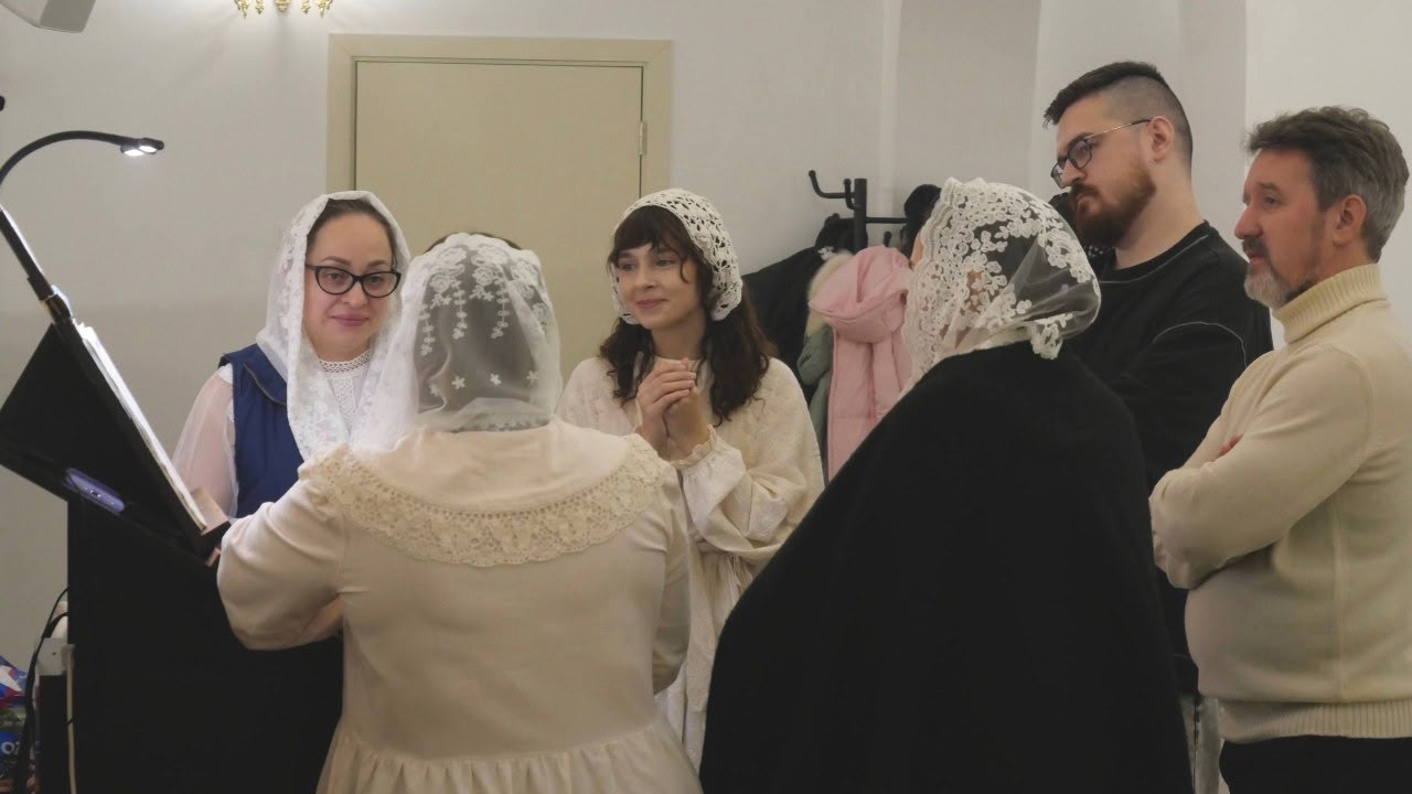 Дева днесь Пресущественнаго раждает, и земля вертеп Неприступному приносит. Ангели с пастырьми славословят, волсви же со звездою путешествуют: нас бо ради родися Отроча младо, превечный Бог.