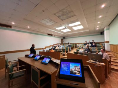 24 ноября настоятель храма св. Георгия Победоносца Патриаршего подворья в Зеленограде иерей Михаил Ильин провёл лекцию «Москва — город святого Георгия», перед группой студентов НИУ МИЭТ. В своём рассказе священник напомнил о становлении герба нашей столицы и Отечества, на котором запечатлён святой Георгий Победоносец. О времени, в которое жил святой, о его подвигах и страданиях за Христа. О том, как слава великомученика за веру распространялась в мире и приводила к Господу все новых и новых последователей. О деяниях Российских правителей, строивших храмы в честь святого Георгия и вводивших воинские награды за личное мужество в его память. Одной из страниц Московской истории, связанной с именем великомученика Георгия стало основание Университета НИУ МИЭТ в Зеленограде в день его памяти 9 декабря, известного также в народе, как Юрьев день. В этом году МИЭТу исполняется 60 лет.